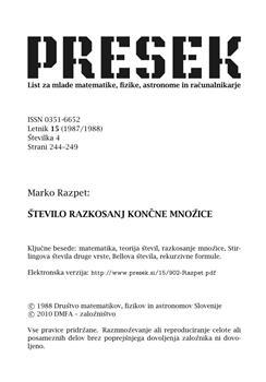 Razpet, Marko. "Število razkosanj končne množice."