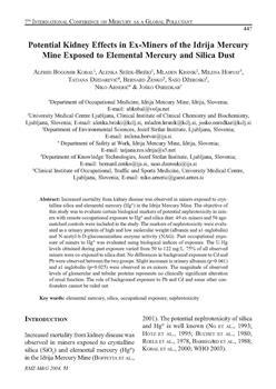 Kobal, Alfred Bogomir, Sešek-Briški, Alenka, Krsnik, Mladen, Horvat, Milena, Dizdarevič, Tatjana, Ženko, Bernard, Džeroski, Sašo, Arnerić, Niko, Osredkar, Joško (2004). Potential kidney effects in ex-mines of the Idrija mercury mine exposed to elemental mercury and silica dust.