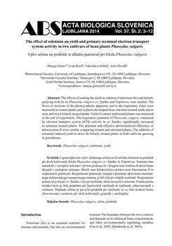 Germ, Mateja, Kreft, Ivan, Stibilj, Vekoslava, Osvald, Jože (2014). The effect of selenium on yield and primary terminal electron transport system activity in two cultivars of bean plants Phaseolus vulgaris.