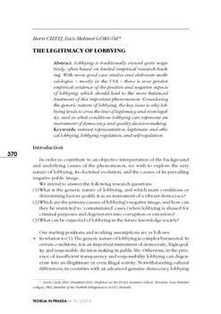 Cizelj, Boris, Gökgöz, Fazi Mehmet (2018). The legitimacy of lobbying.