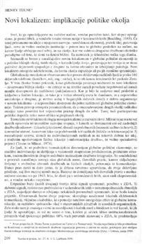 Teune, Henry, Kramberer, Anton. "Novi lokalizem: implikacije politike okolja."