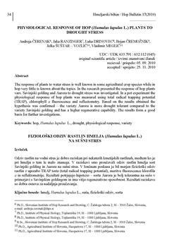Čerenak, Andreja, Razinger, Jaka, Drinovec, Luka, Čremožnik, Bojan, Šuštar Vozlič, Jelka, Meglič, Vladimir. "Physiological response of hop (Humulus lupulus L.) plants to drought stress."