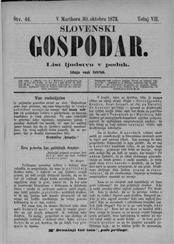 Slovenski gospodar: podučiven list za slovensko ljudstvo (30.10.1873), letnik 7, številka 44. URN:NBN:SI:doc-NXRWBFFK from http://www.dlib.si