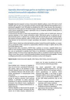 Ojsteršek, Vlasta, Ojsteršek, Tadej. "Uporaba alternativnega goriva za toplotno ogrevanje mešanih komunalnih odpadkov v RCERO Celje."