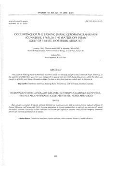 Orlando Bonaca, Martina, Lipej, Lovrenc, Makovec, Tihomir, Žiža, Valter (2000). Occurrence of the Basking shark, Cetorhinus maximus (Günnerus, 1765), in the waters off Piran (Gulf of Trieste, Northern Adriatic).