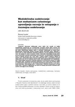 Lavtar, Roman. "Medobčinsko sodelovanje kot mehanizem celostnega upravljanja razvoja in vstopanja v čezmejna sodelovanja."