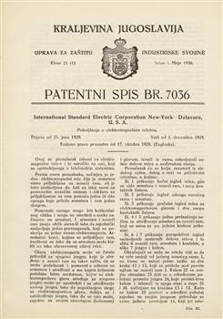 Patentni spis. Razred 21. Oddelek 21922-1941(Assembly record)