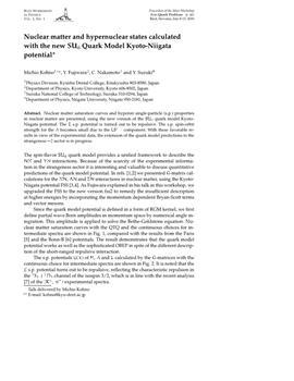 Kohno, Michio, Fujiwara, Y., Nakamoto, C., Suzuki, Y.. "Nuclear matter and hypernuclear states calulated with the new SUsub6 quark model Kyoto-Niigata potential."