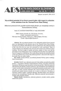 Al Sayegh-Petkovšek, Samar, Kraigher, Hojka. "Mycorrhizal potential of two forest research plots with respect to reduction of the emissions from the Thermal Power Plant Šoštanj."