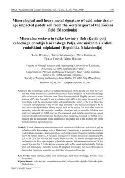 Dolenec, Tadej, Serafimovski, Todor, Dobnikar, Meta, Tasev, Goran, Dolenec, Matej (2005). Mineralogical and heavy metal signature of acid mine drainage impacted paddy soil from the western part of the Kočani field (Macedonia).