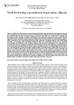 Solanke, Muse Olayiwola, Raji, Bashiru Adisa, Alli, Taiwo Kareem. "Vehicles leasing operations in Lagos state, Nigeria."