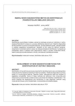 Radišek, Sebastjan, Jakše, Jernej. "Razvoj novih diagnostičnih metod za identifikacijo povzročiteljev hmeljeve uvelosti."