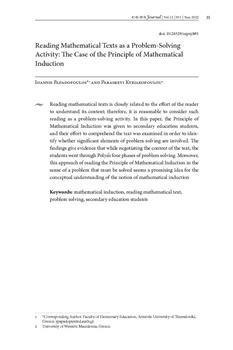 Papadopoulos, Ioannis, Kyriakopoulou, Paraskevi (2022). Reading mathematical texts as a problem-solving activity.