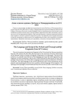 Novakov, Dragana (2023). Jezik i pismo odlomka Trebnika i Četvorojevanđelja iz XVI veka.