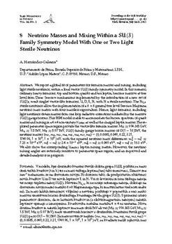 Hernández-Galeana, A.. "Neutrino masses and mixing within a SU(3) family symmetry model with one or two light sterile neutrinos."