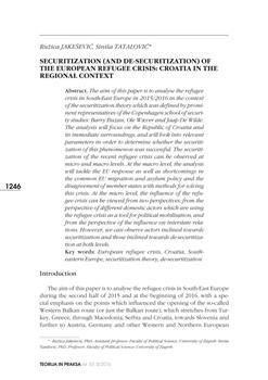 Jakešević, Ružica, Tatalović, Siniša. "Securitization (and de-securitization) of the European refugee crisis."