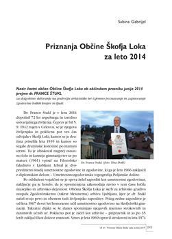 Kocjančič, Sabina, Dokl, Tina. "Priznanja Občine Škofja Loka za leto 2014."