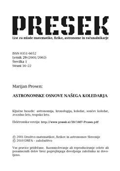 Prosen, Marijan. "Astronomske osnove našega koledarja."