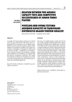 Filipčič, Aleš, Završki, Srečo. "Relation between two aerobic capacity tests and competitive successfulness of junior tennis players."