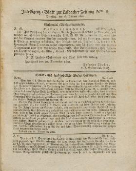 Intelligenzblatt zur Laibacher Zeitung08.01.1822(prejšnja številka)