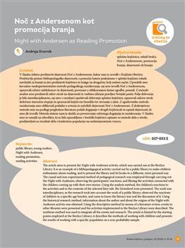 Dvornik, Andreja (2020). Noč z Andersenom kot promocija branja.