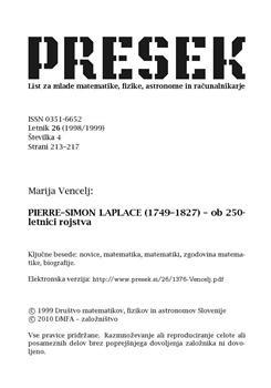 Vencelj, Marija (1999). Pierre-Simon Laplace (1749-1827).