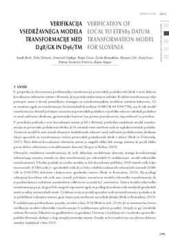 Berk, Sandi, Fabiani, Niko, Fajdiga, Dominik, Oven, Katja, Komadina, Žarko, Čeh, Marjan, Lisec, Anka, Pavlovčič Prešeren, Polona, Stopar, Bojan (2015). Verifikacija vsedržavnega modela transformacije med D48/GK in D96/TM.