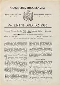 Patentni spis. Razred 21. Oddelek 21922-1941(Zbirni zapis)