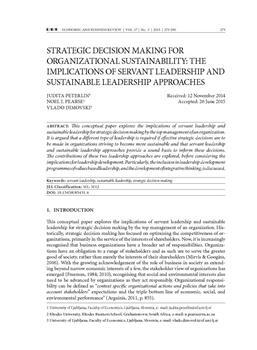 Peterlin, Judita, Pearse, Noel J., Dimovski, Vlado. "Strategic decision making for organizational sustainability."