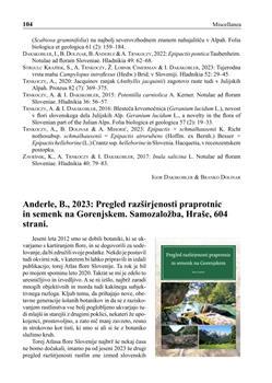 Anderle, B., 2023: Pregled razširjenosti praprotnic in semenk na Gorenjskem. Samozaložba, Hraše, 604 strani (številka: 52, 2023)