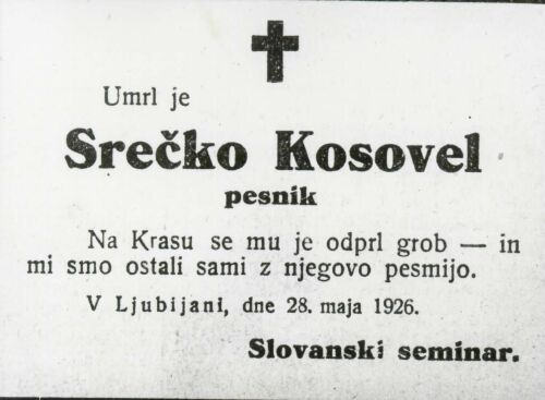 Srečko Kosovel: osmrtnica