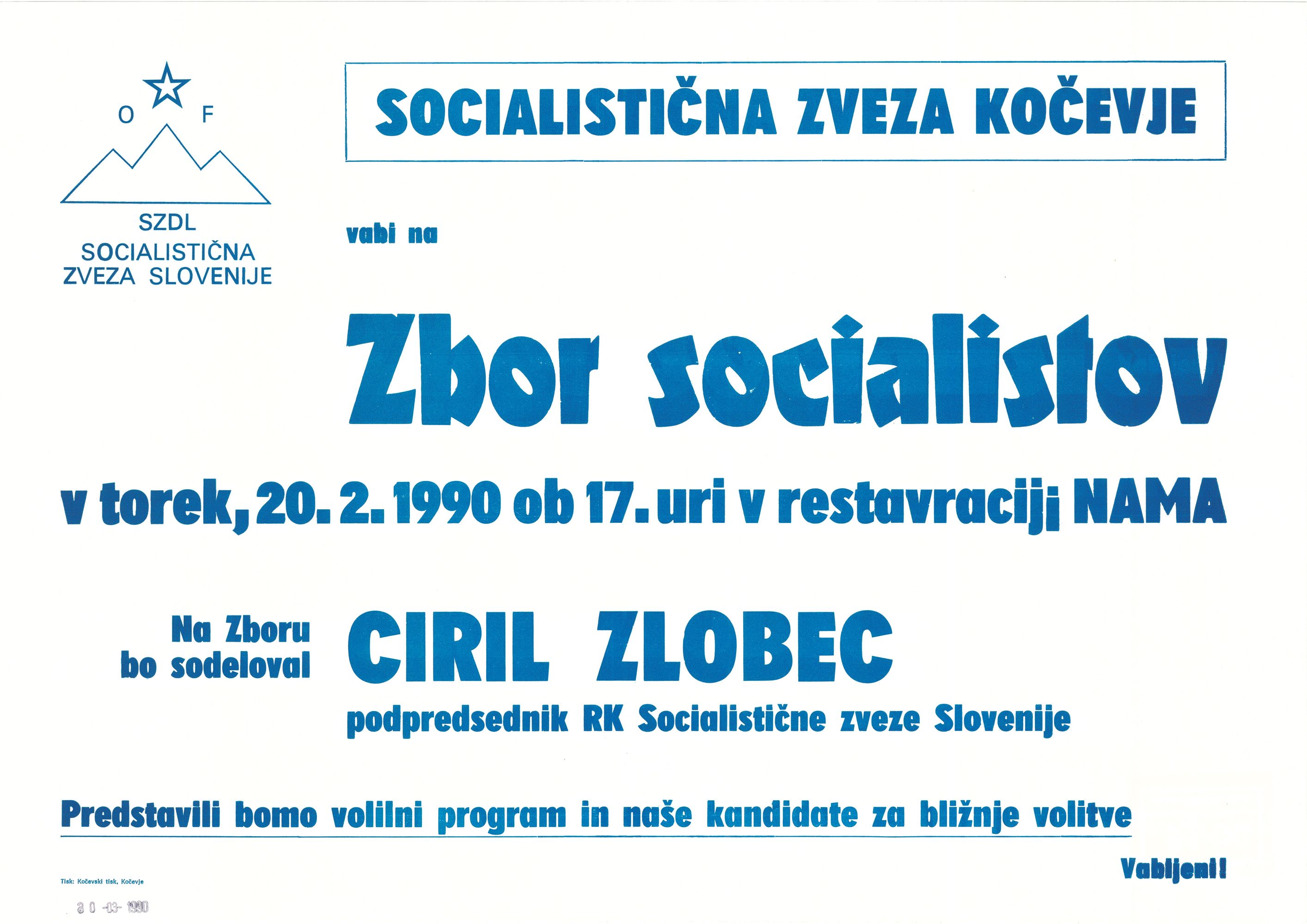 Socialistična zveza Kočevje vabi na zbor socialistov (predstavili bomo vovlilni program in naše k...